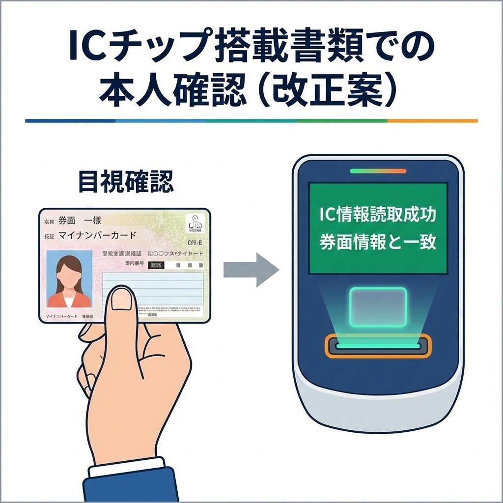 ICチップ付きの本人確認書類(特にマイナンバーカード)を持っていると、手続きがより迅速に、かつ郵送確認なしで完了できるようになることが予想されます。