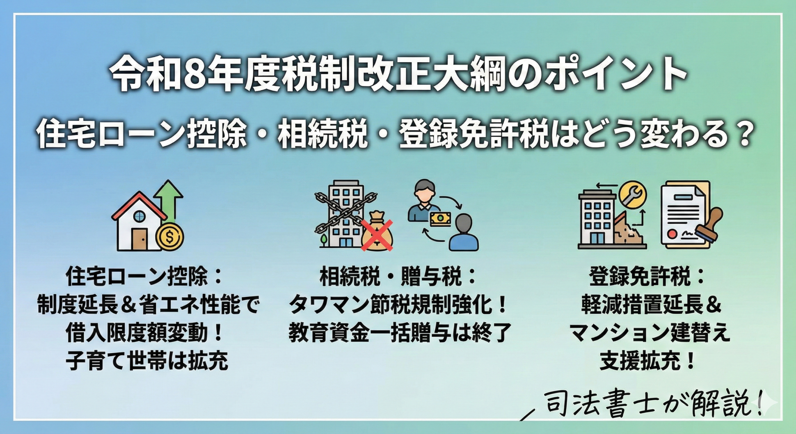 住宅ローン控除・相続税・登録免許税はどう変わる?